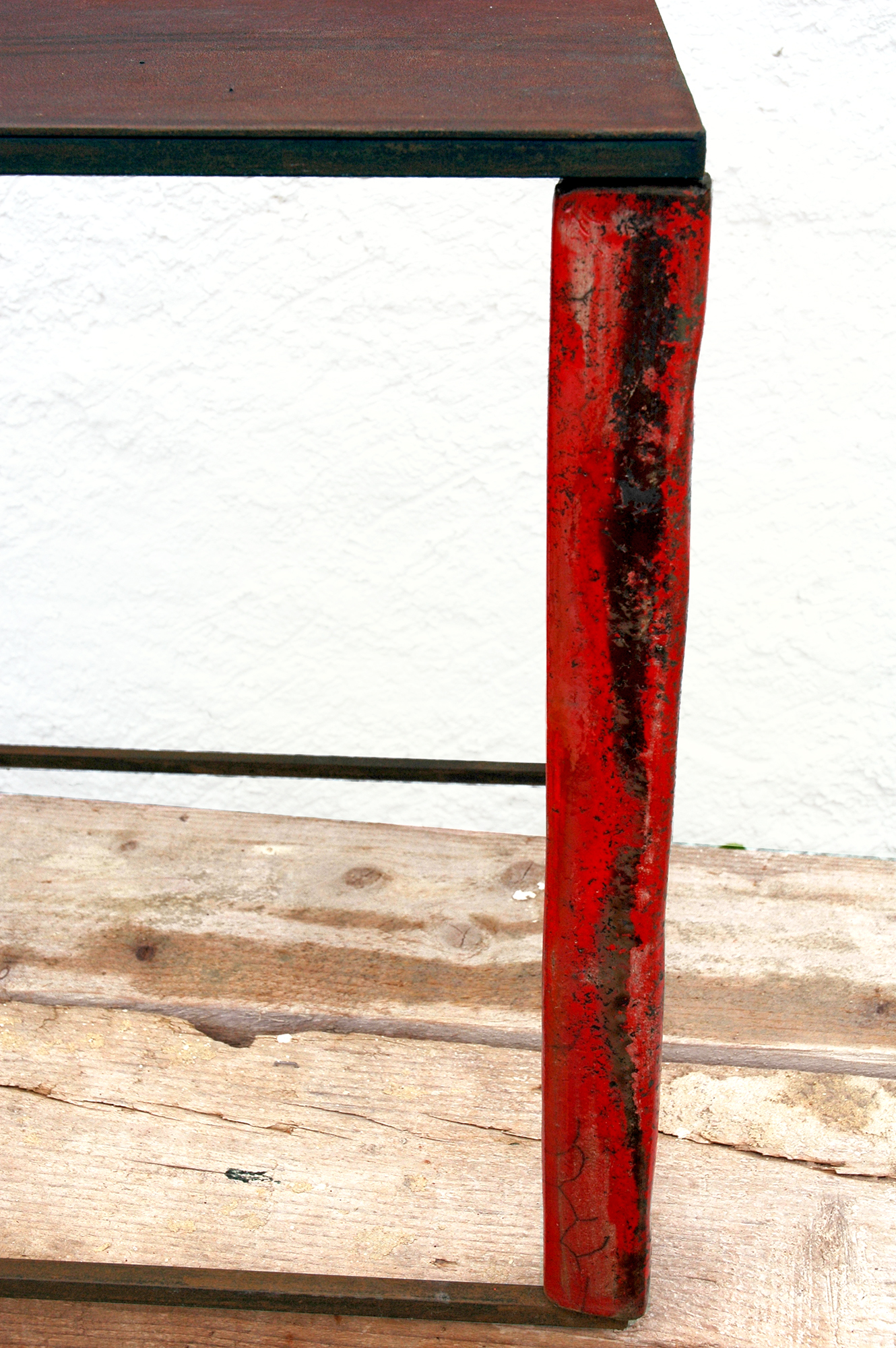 Appoint en acier patiné et ciré, céramique (cuisson raku)