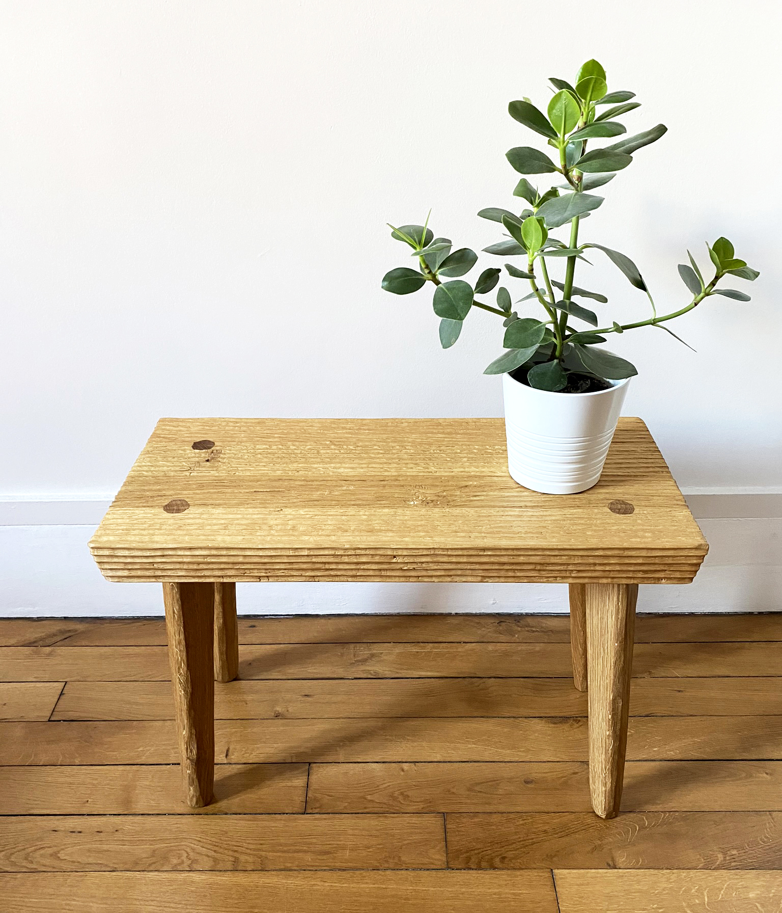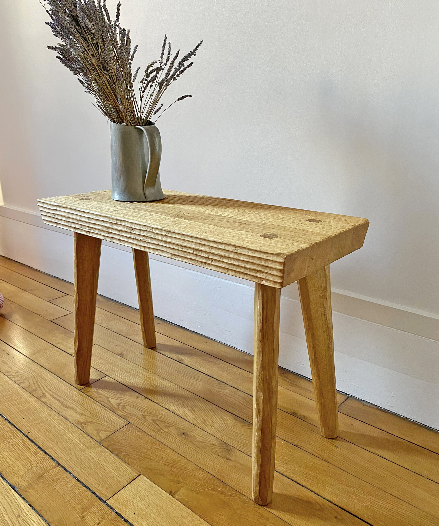 Banc ou appoint en chêne massif. Relief réalisé à la gouge