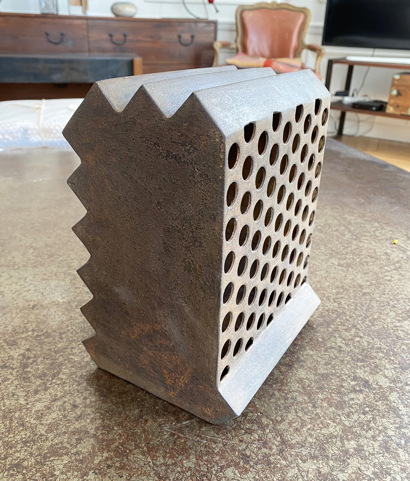 Sculpture en acier patiné et ciré